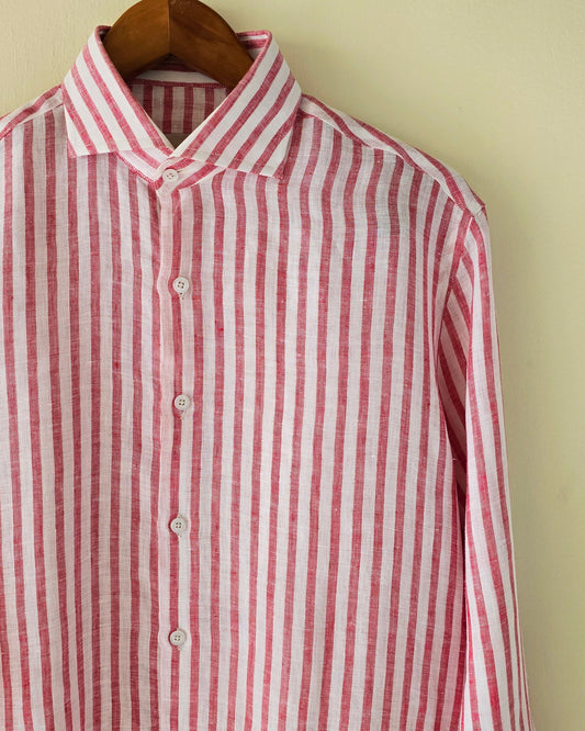 Red & White Striped Linen Shirt.