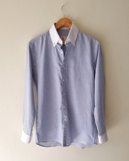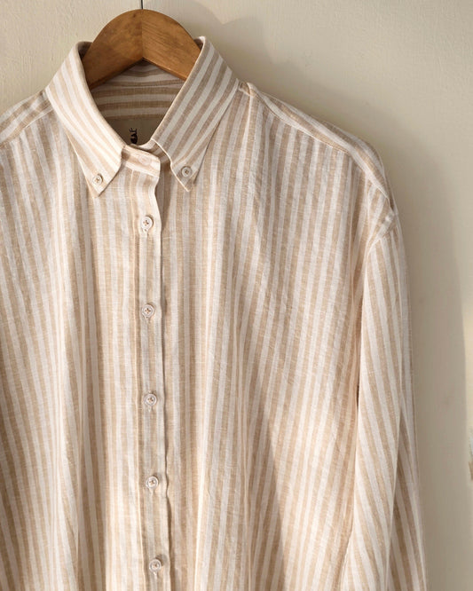 Chamois Pin Stripe Linen Shirt with White Button Down Collar.