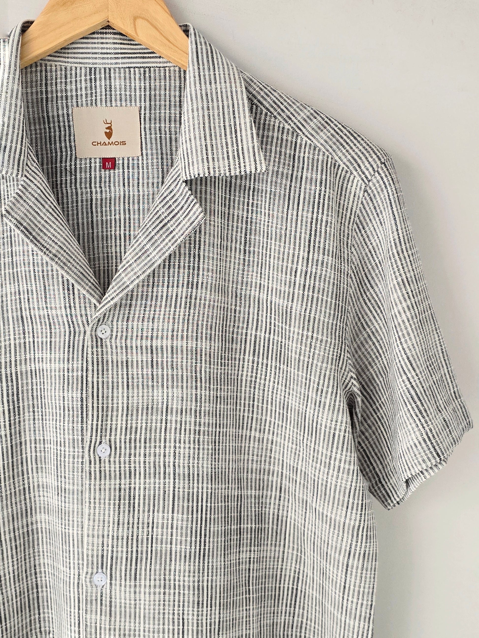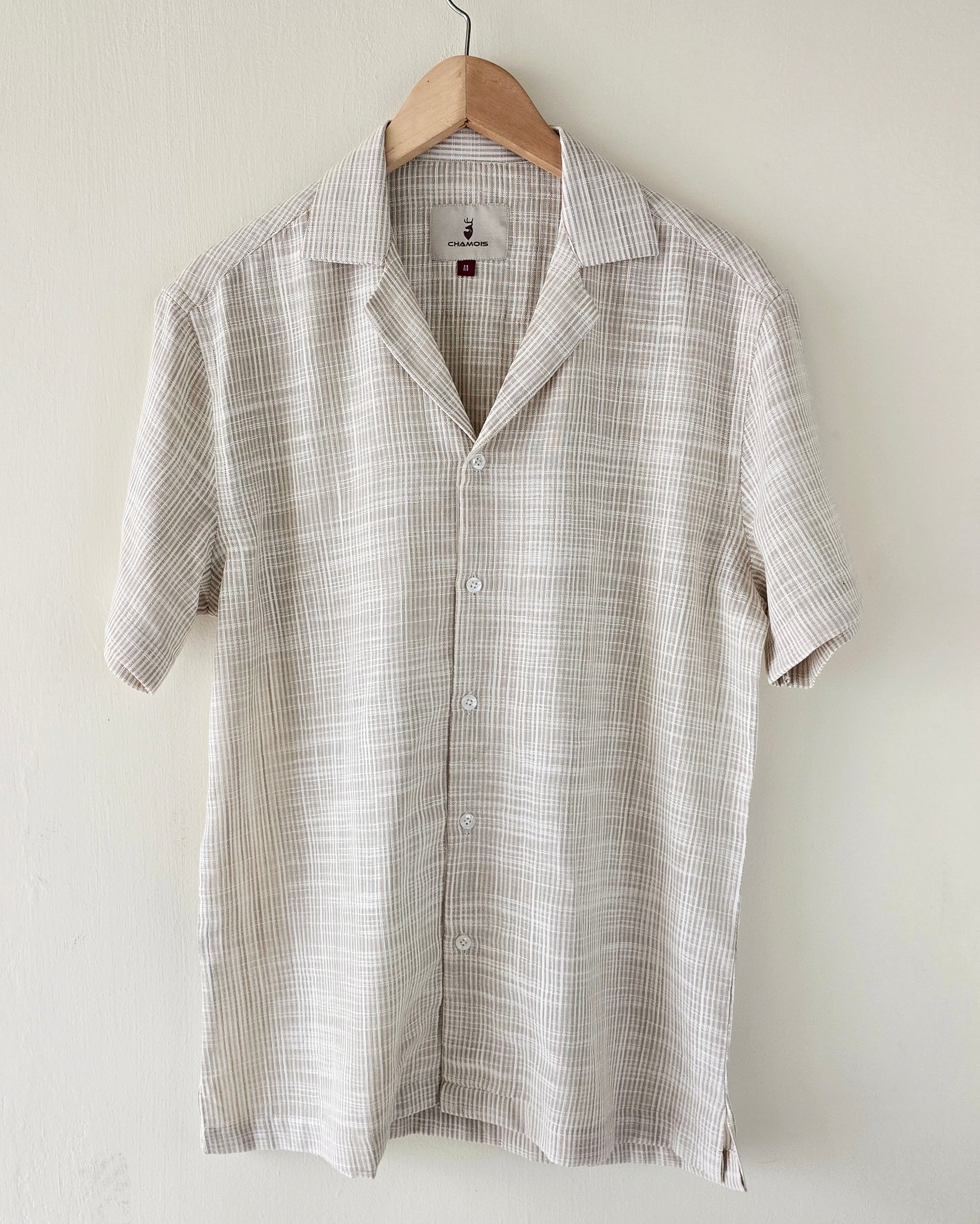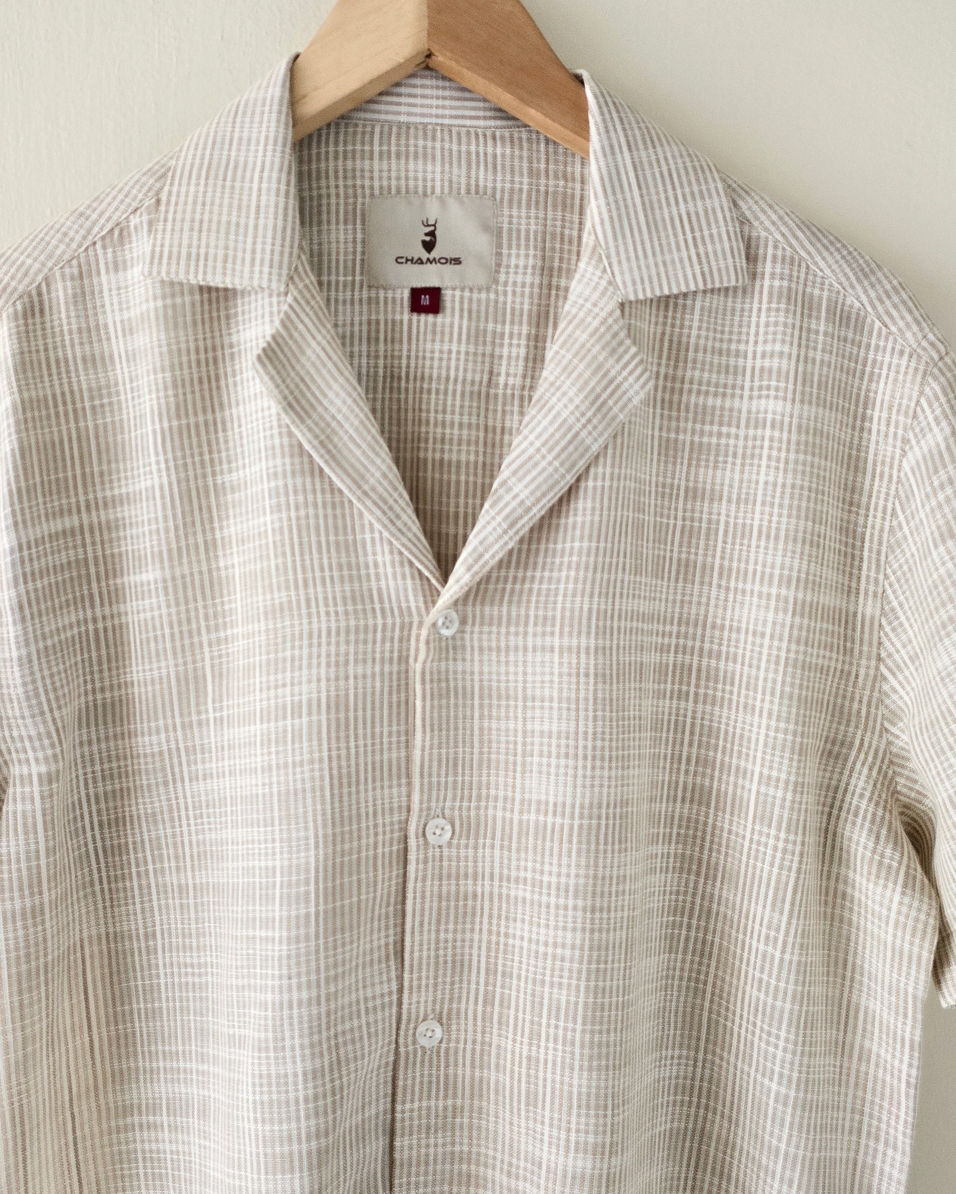 Embrace the laid-back elegance of the Cuban shirt with a contemporary twist. Add the Beige Textured Cuban Shirt by Chamois to your collection today and make every outing a stylish affair!