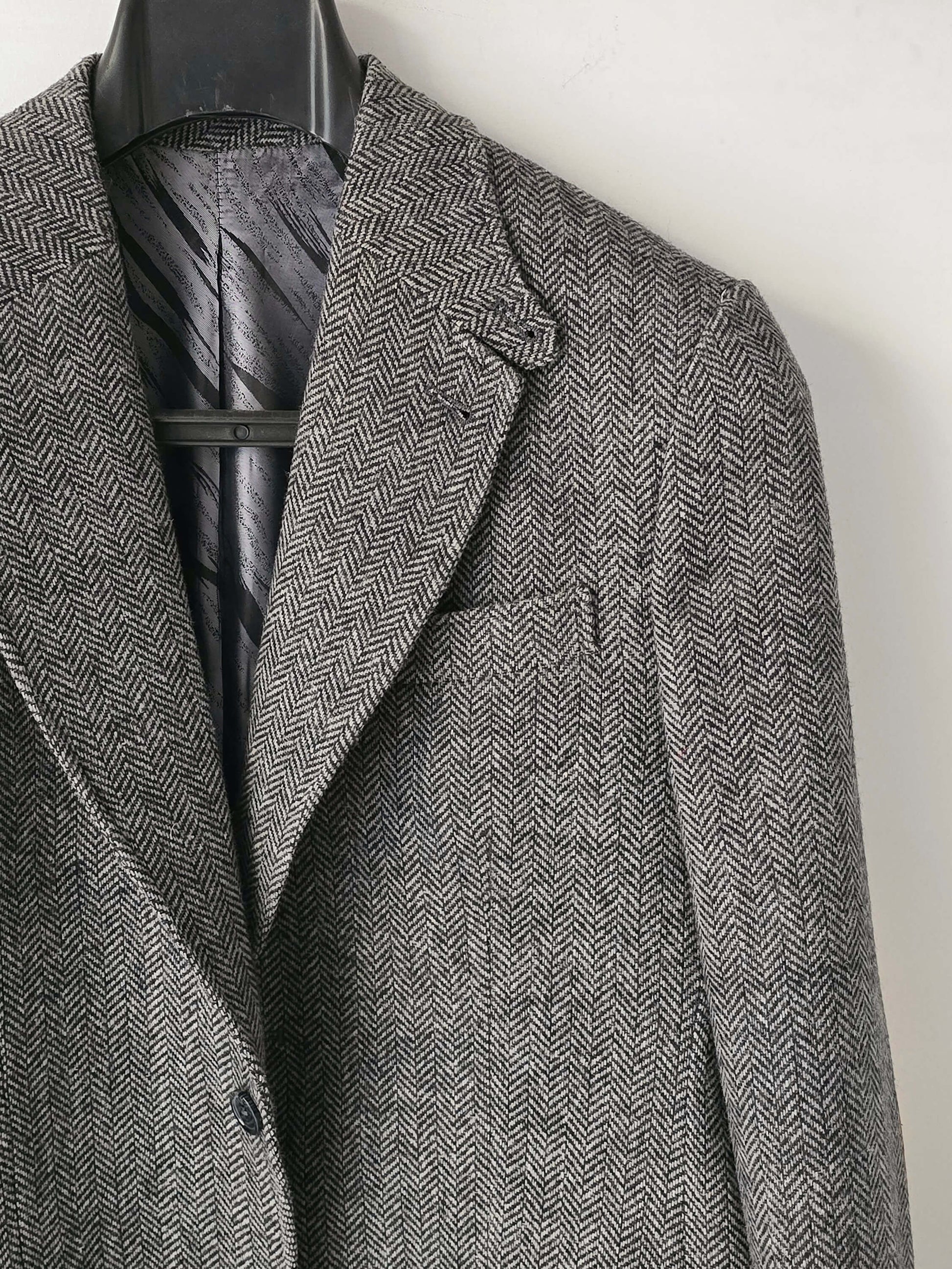 Introducing the chamois Grey Tweed Blazer. Made with high-quality tweed and featuring stylish elbow patches, this blazer is perfect for both casual and formal occasions. Enjoy the timeless and versatile look of grey while adding a touch of classic style to your wardrobe.