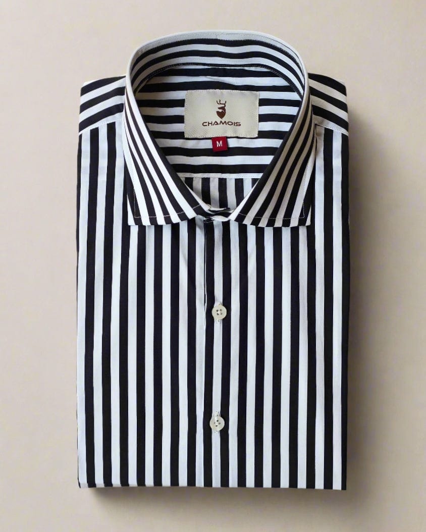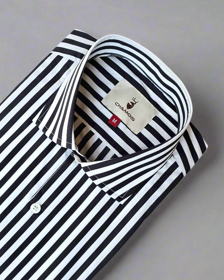 Striped shirt, a must have shirt in your wardrobe. It shows you slim and smart.